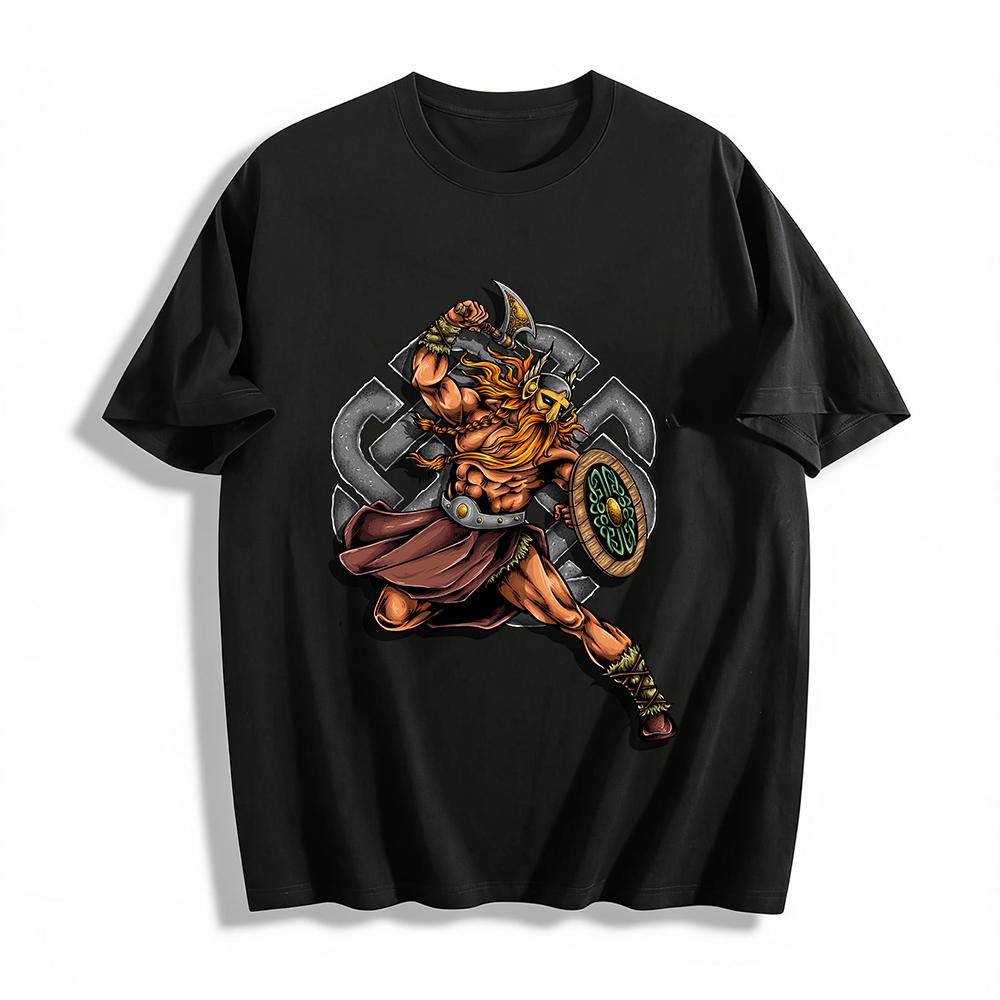 Nordic Viking Warrior Print T-Shirt Cool Street Style Casual Tee Pure cotton T-shirt