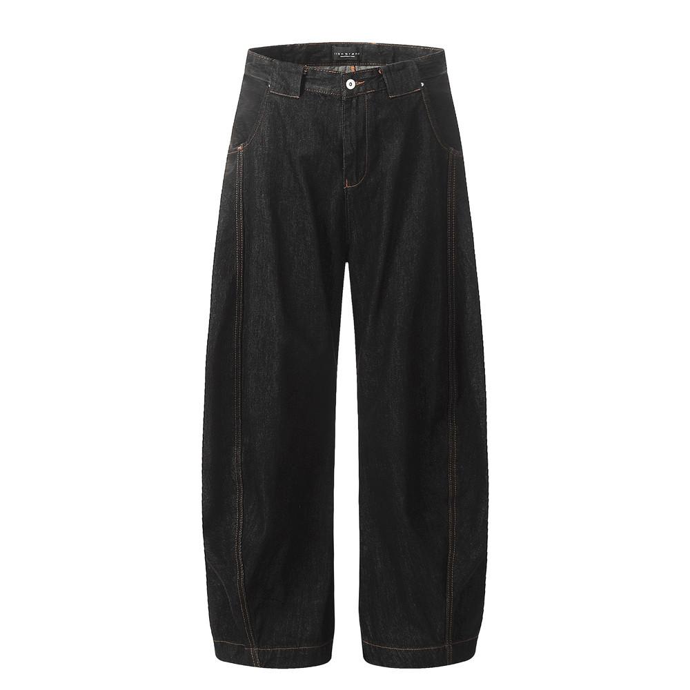 Stitching Thimble Denim Trousers Men's Retro Street Wear Loose Straight Wide-leg Pocket Jeans Men's Trousers Bloomers