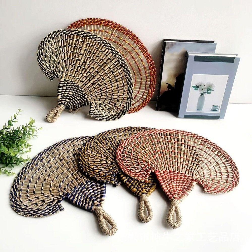 Bohemian Hand-woven Straw Fan Colorful Cattail Fan Gift Decorative Handmade Fan Beach