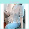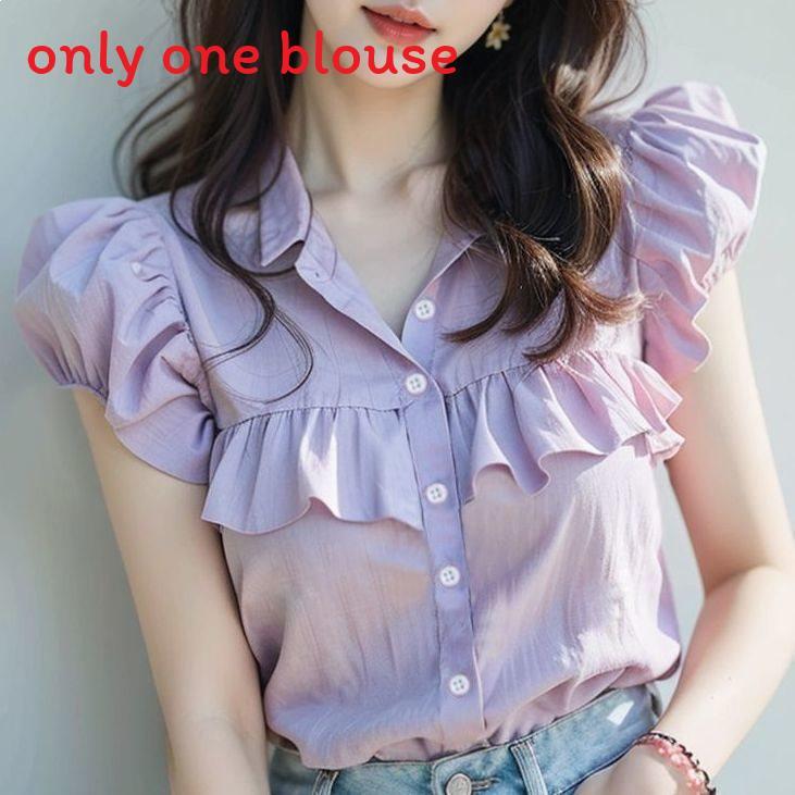 French Fashion Blouse Short Sleeve Puff Sleeve Ruffled Design For Summer 2025