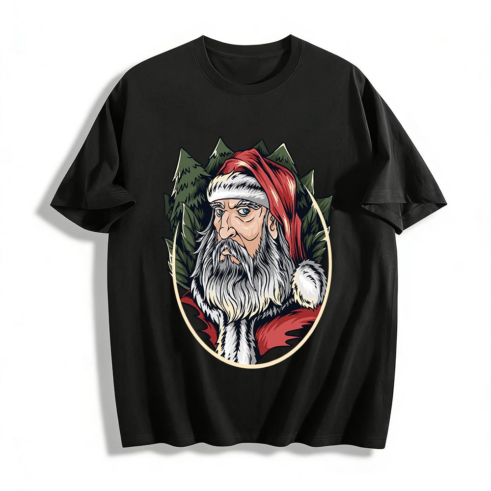 Cool Tough Santa Claus Print Long Sleeve T-Shirt Trendy Holiday Top Pure cotton T-shirt