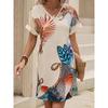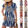 V-Neck Short Sleeve Abstract Print Shift Dress – Boho Chic Summer Dress for Beach, Vacation & Casual Outings