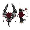 2pcs Gothic Lace Choker Necklace Finger Rings Bracelet Halloween Costume Accessories Jewelry for Women Girls Gift