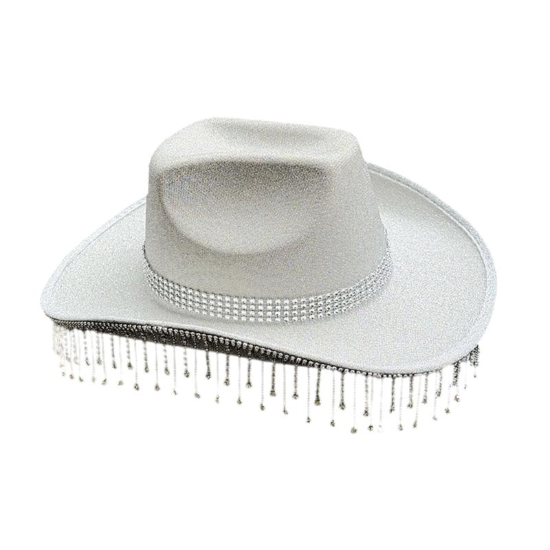 Shimmering Rhinestones Fringed Hat for Women Men Music Festival Fedoras Hat with Large Brims Glittering Powder for Party