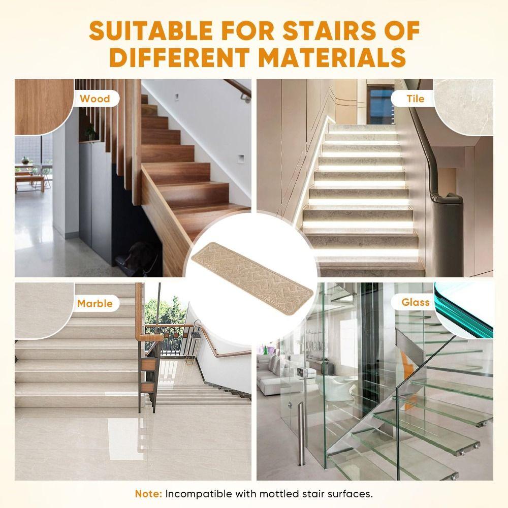 1pc Durable 8x30 Inch Stair Treads Non-Slip TPR Backing Stair Mats Noise Reduction Self-adhesive Stair Runner Rugs Home Decor