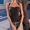 New French Polka Dot Print Sexy Halter Neck Camisole Top for Women Pure and Alluring Princess Style Fitted Waist Tank Top