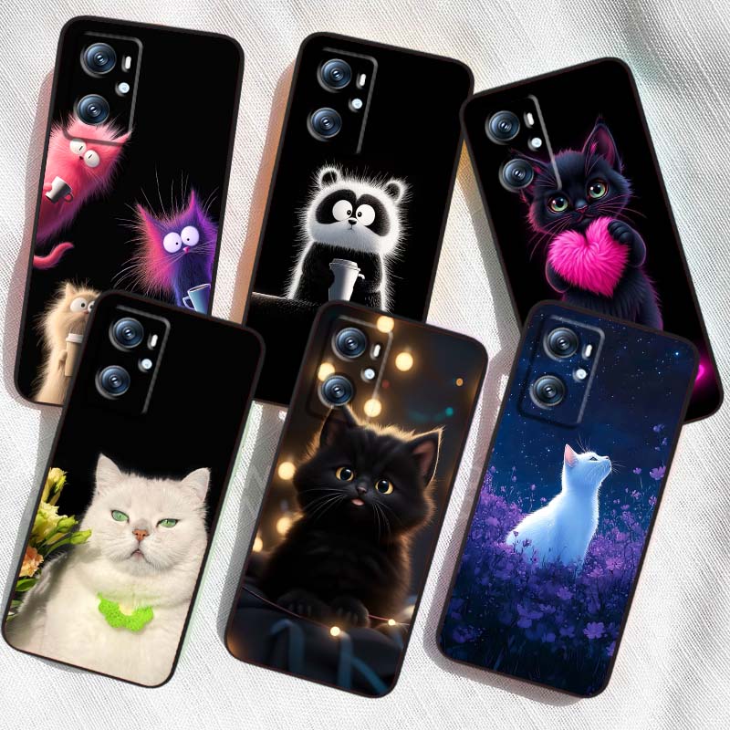 Anime cartoon cat illustration For OPPO Reno 5 6 7 A96 A40 A58 Realme GT A74 A78 Neo2 A74 A78 Find X5 X3 X7 X8 Black Phone Case