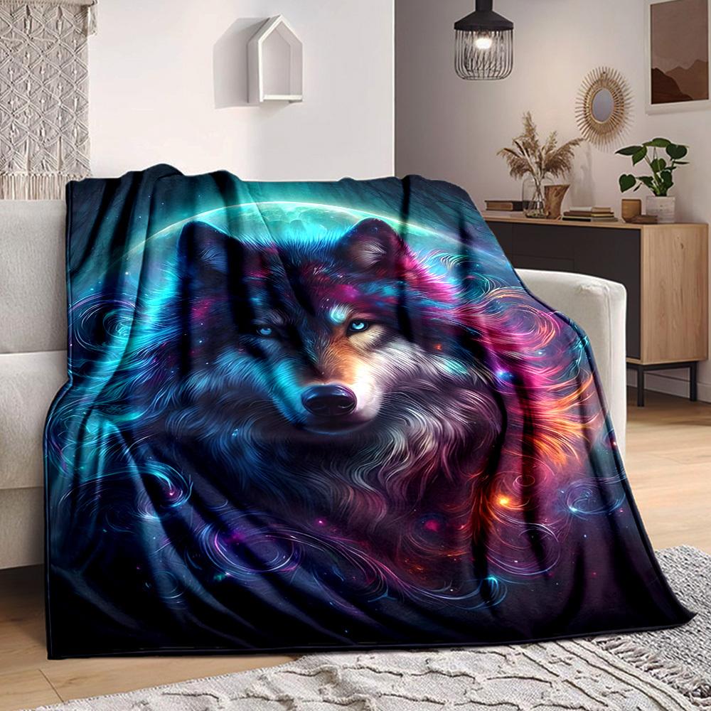 1pc Wolf Galaxy Art Blanket Lightweight Flannel Blanket Throw Blanket For Sofa, Bed, Travel, Camping yy2509026139