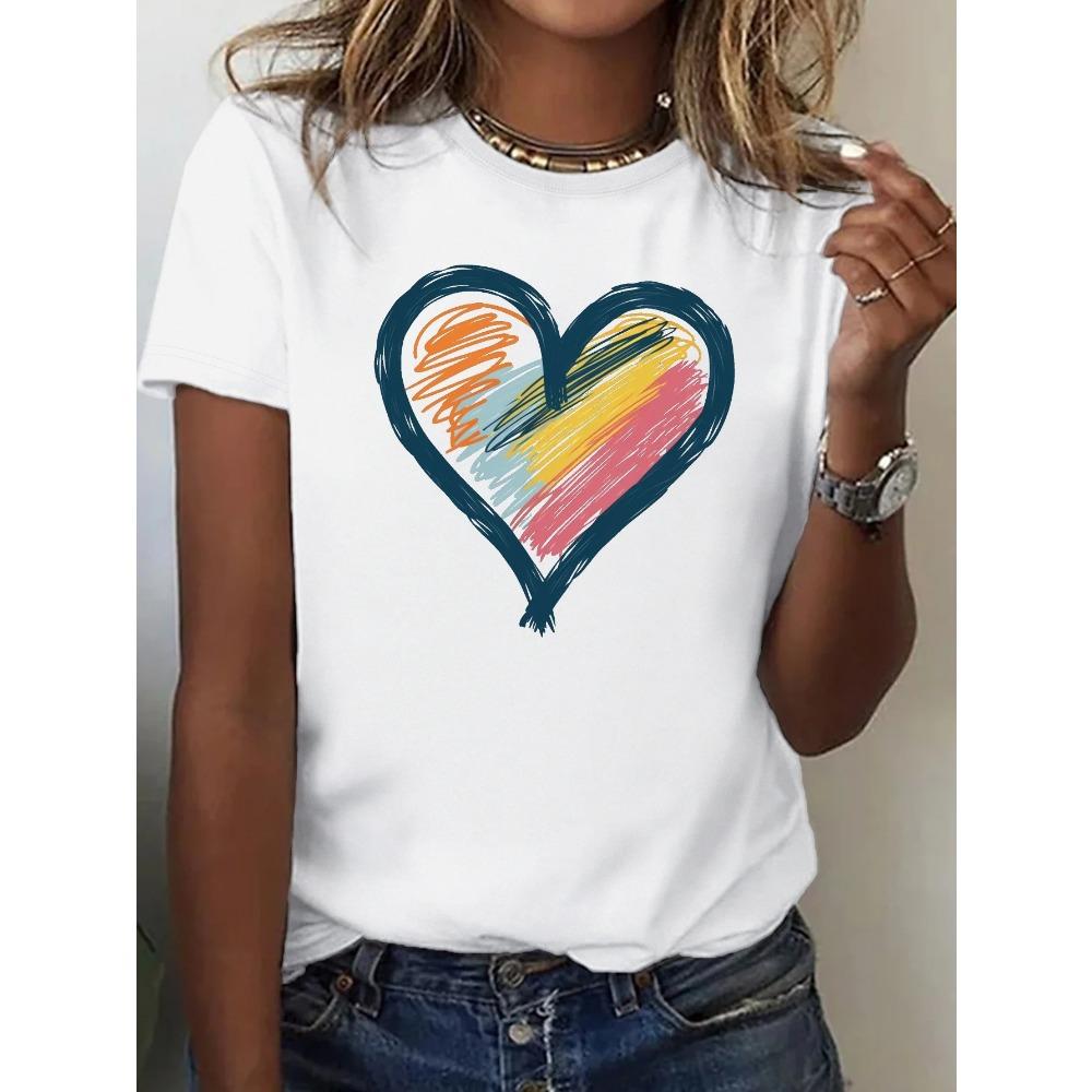 Soft T-shirt for women with a bright design painted to Unisex in the shape of a heart casual comfortable with round collarshirt