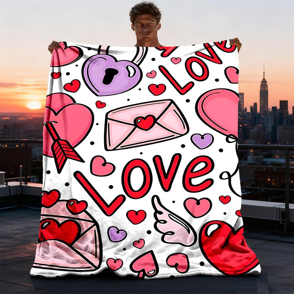 1pc Love, Valentine's Day Outdoor Blanket - Soft Flannel Cozy for Travel & Camping - All-Season Warm Bed Cover, Machine Washable yy251229086