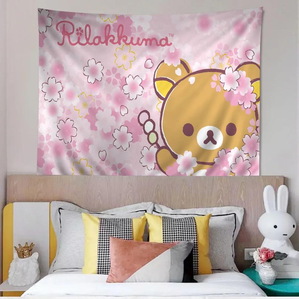 RRilak Bear Kuma Bear Anime Tapestry Hippie Flower Wall Carpet Dormitory Decoration Cheap Hippie Wall Hanging