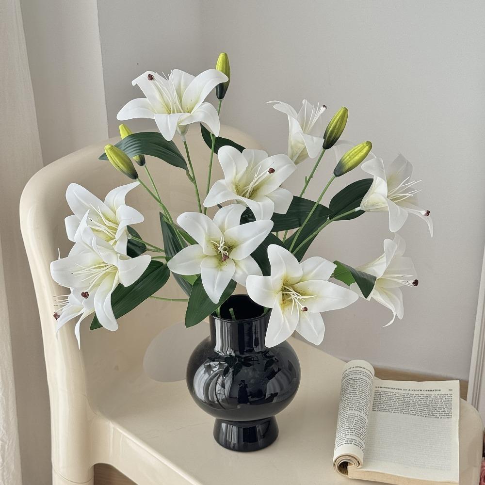 2 Heads Film Lily Artificial Flowers Fake Floral for Home Wedding Table Decor Ornament