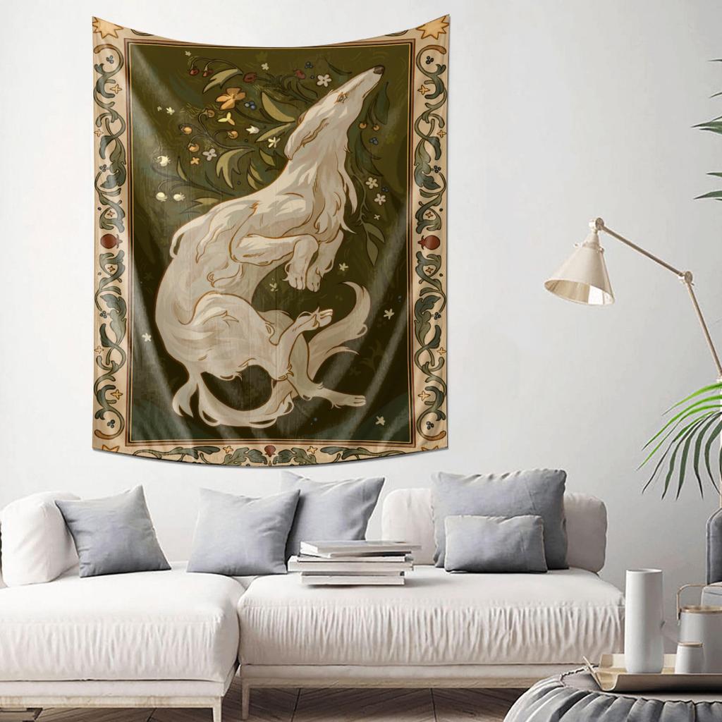 Dreamy Double Wolf Art Tapestry Bedroom Living Room Wall Decoration Fabric