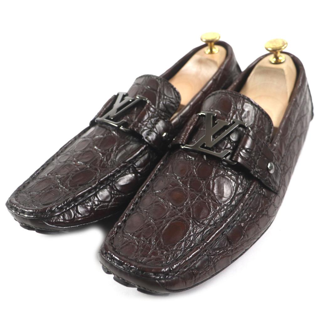 Pristine LOUIS VUITTON loafers Dark brown Crocodile mens 10 Used