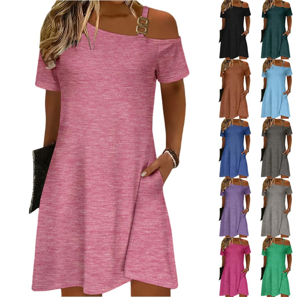 Women's Casual Loose-fitting Sexy Off-shoulder Short-sleeved Dress
