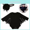 Trendy Infant Cotton Bat Rompers and Hat Set Batwing Sleeve Solid Halloween Animal Clothes Baby Jumpsuit Hat for Babies 70-100