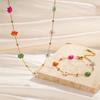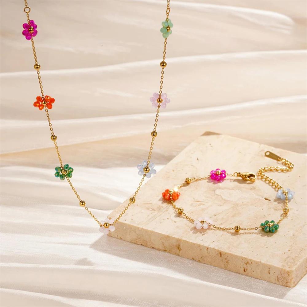 Gold Plated Stainless Steel Waterproof Necklace Bracelet Set Colorful Artificial Crystal Flower Chain Jewelry Set for Women Gift