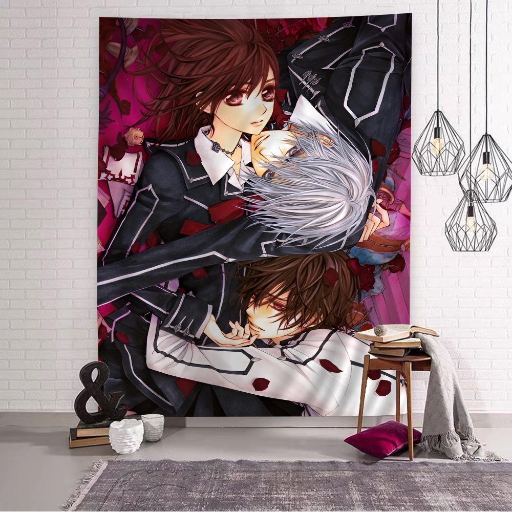 Vampire Knight Manga Cover Wall Tapestry Gothic Vampire Romance Shoujo Stylish Room Decor for Vampire Romance Anime Fans