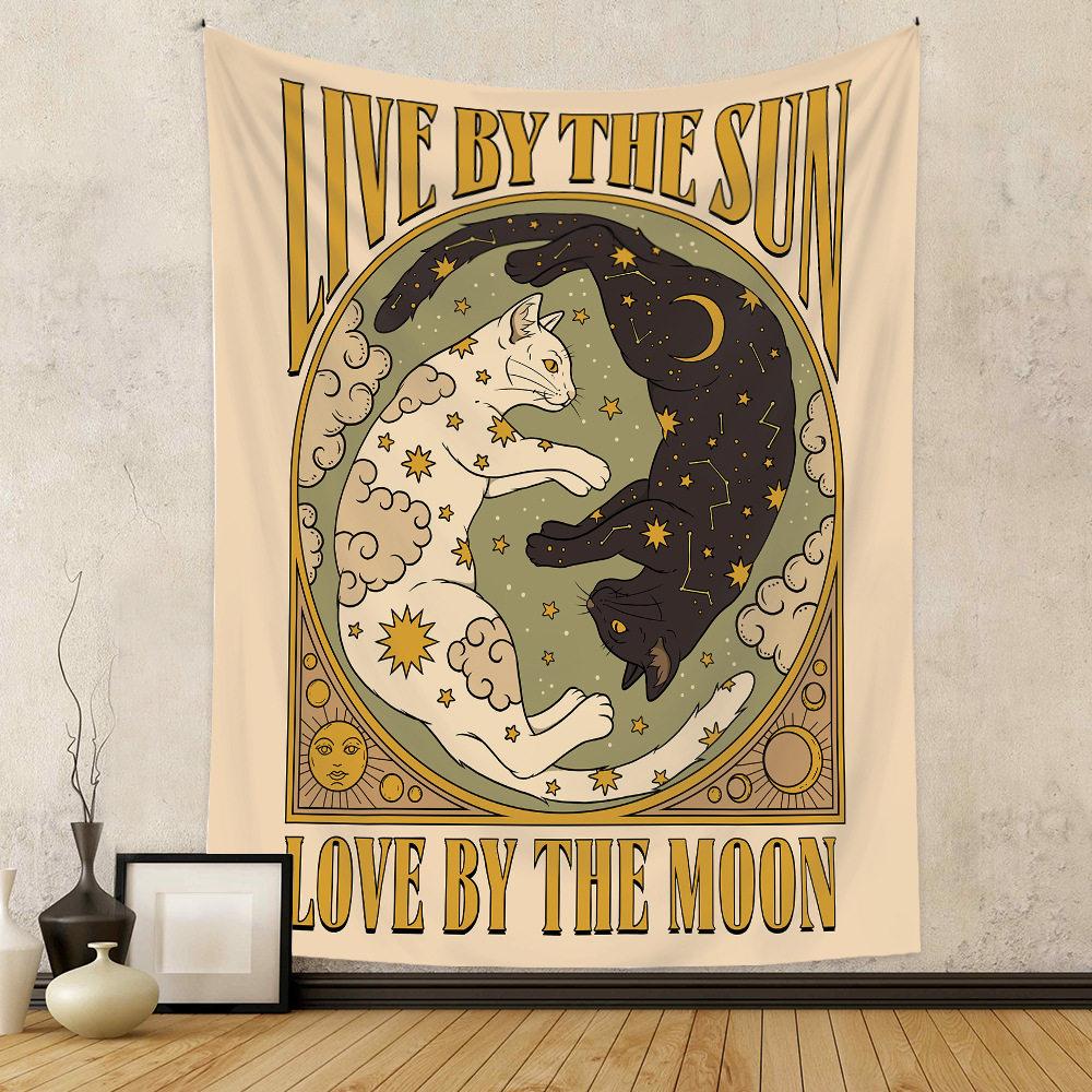 Vintage Tarot Cat Bohemian Wall Tapestry for Bedroom Decor Artwork Cat Tarot Vintage Boho Style Hanging Tapestry