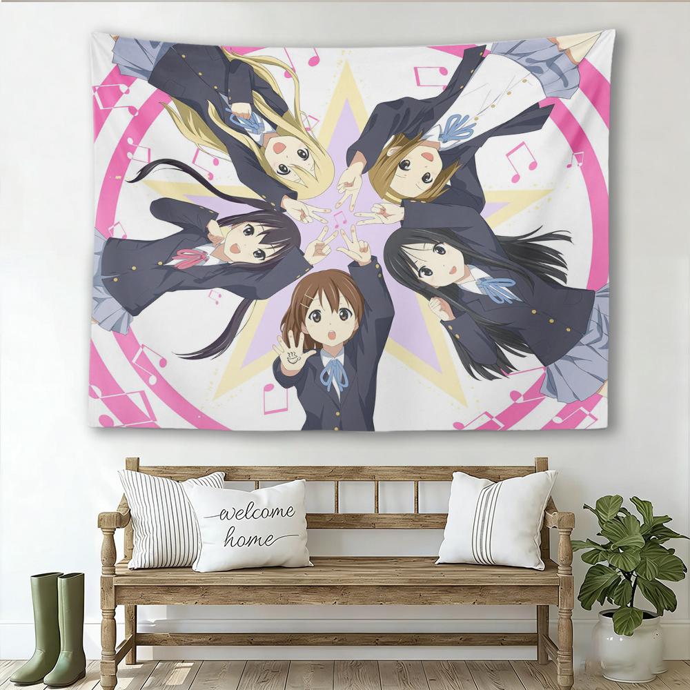 KON Anime Group Wall Tapestry Cute Music Anime Girl Wall Hanging Polyester Decor for Bedroom Dorm Anime Fans
