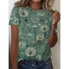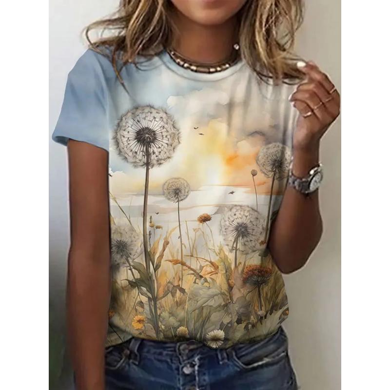 Dandelion Short Sleeve Fashion Women's Crew Neck T-Shirt 3D Dandelion Color Printing Crew Neck Short Sleeve