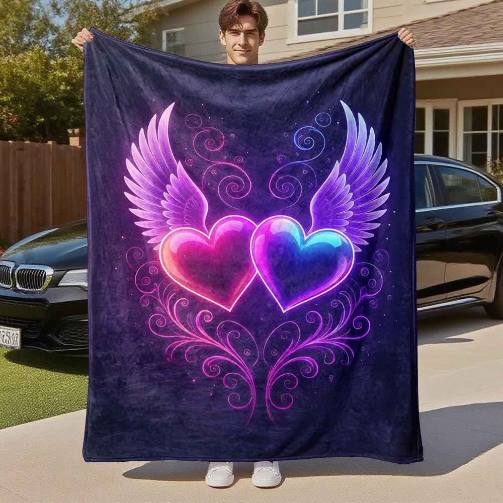 1pc Hearts Wings Outdoor Flannel Blanket Soft Warm All-Season Throw for Sofa Bed Car Camping Office, Cozy Gift Idea1319S