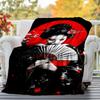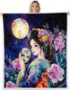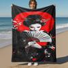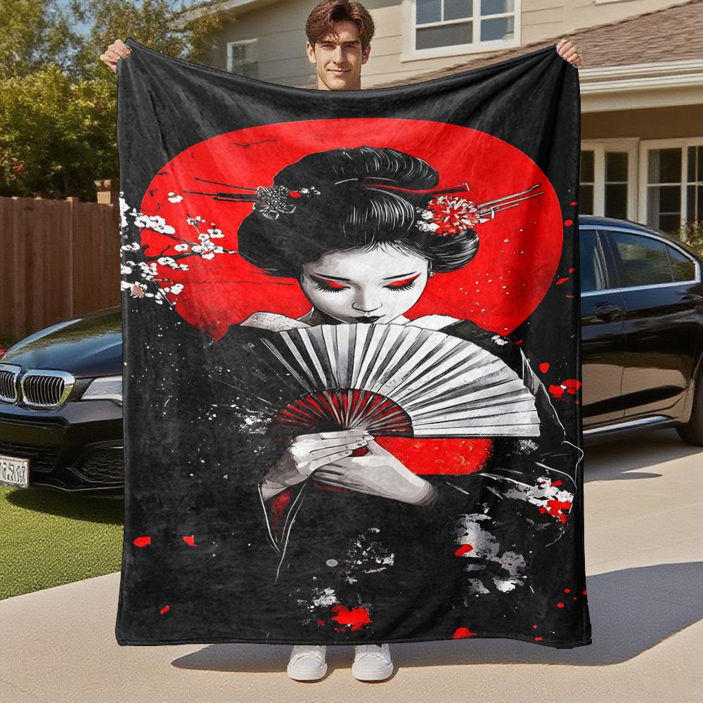 1pc Geisha Sakura Outdoor Flannel Blanket Soft Warm All-Season Throw for Sofa Bed Car Camping Office, Cozy Gift Idea1182S
