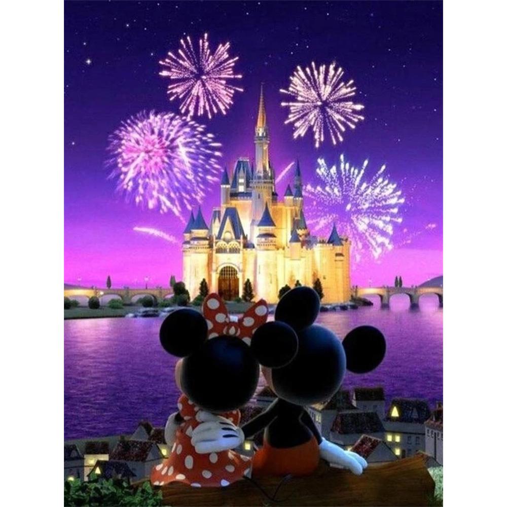 Disney Diamond Painting Mickey and Minnie Castle Fireworks Romantic Freeze-frame Wall Decoration Full Diamond Cross-stitch DIY Gift Home Decoration