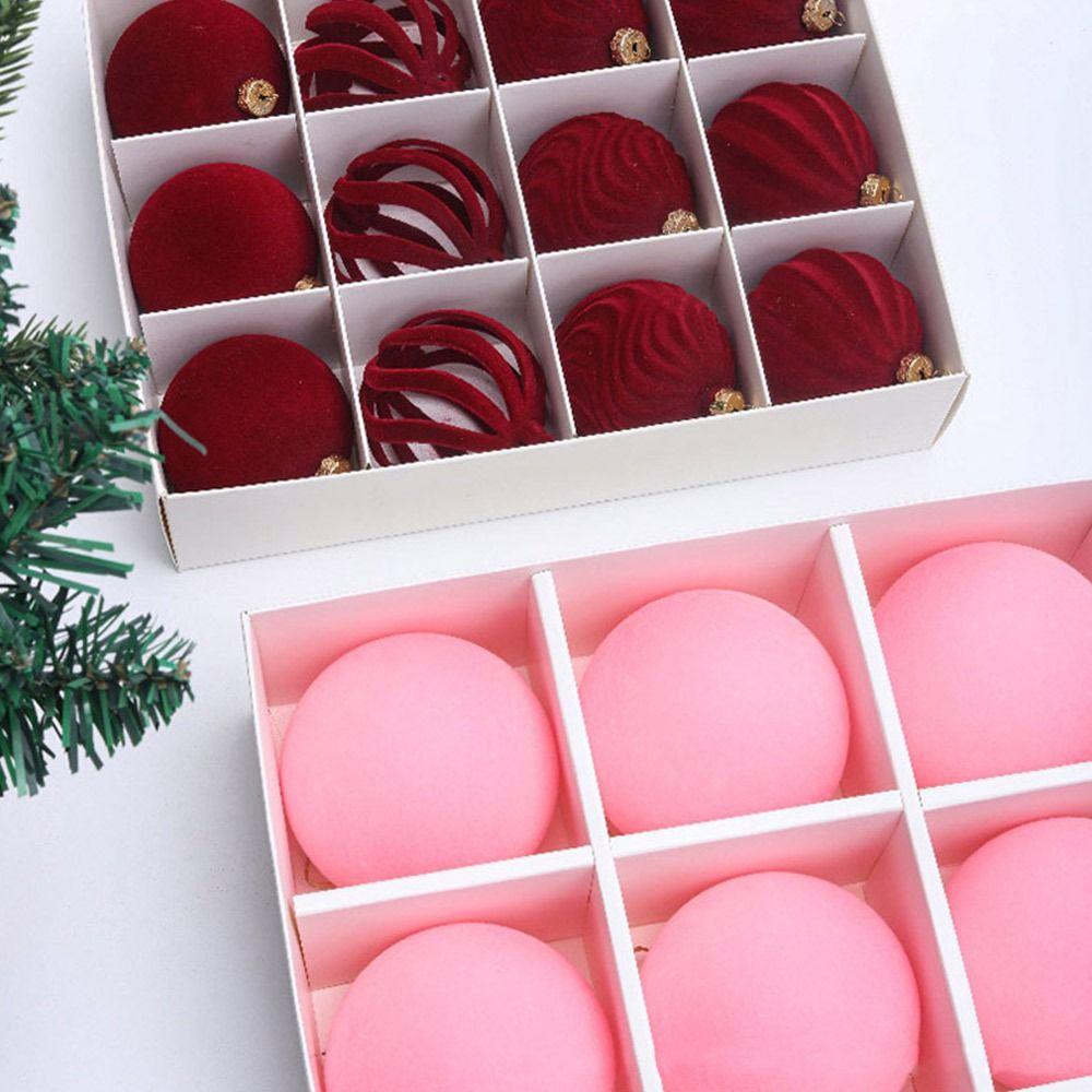 9/12/30 Pcs/set flannel Christmas Ball Set Hollow-out 6/8cm Xmas Tree Hanging Pendant Hanging Red Christmas Decorations