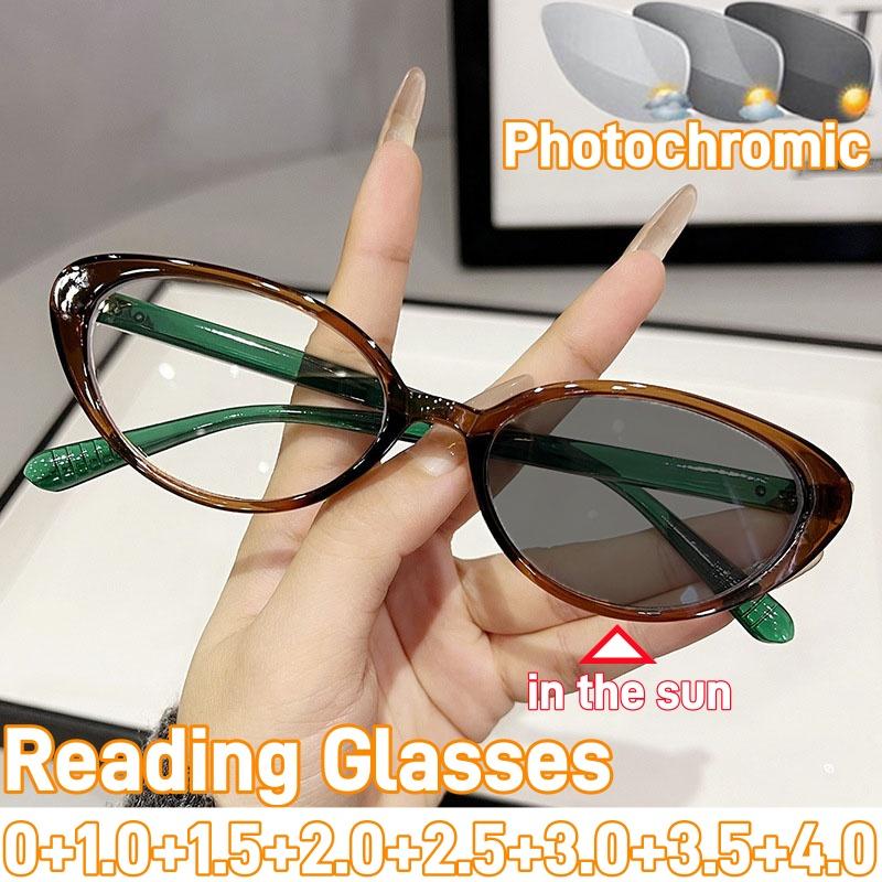 New Trendy Photochromic Reading Glasses Women Fashion Cat Eye Frame Presbyopia Eyewear Men Color Changing Far Sight Eyeglasses