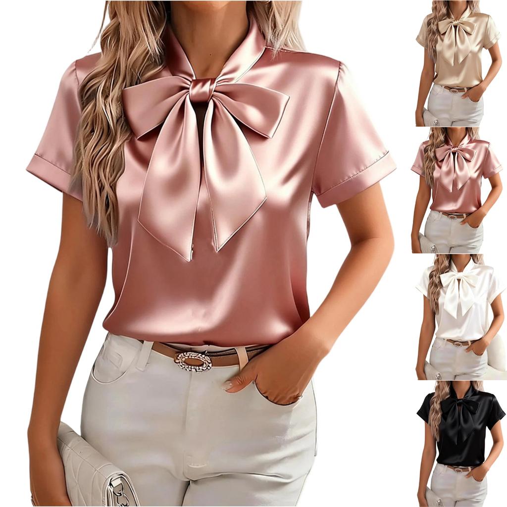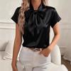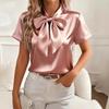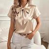 Women's Fashionable Color Round Neck Short Sleeved Bow Shirt Pullover Top