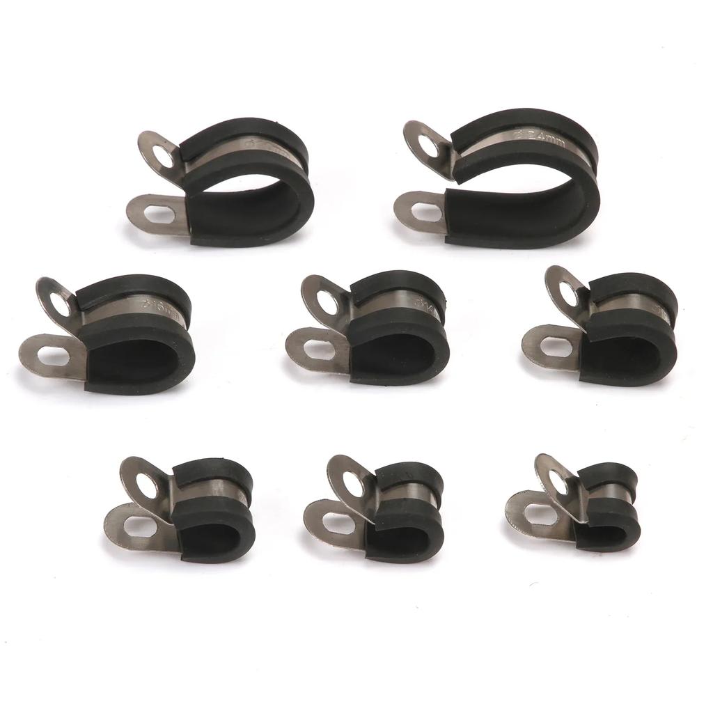 10pcs/20pcs Rubber Lined P Clips Cable Mounting Hose Pipe Clamp Fixing Pipes Stainless Steel Hardware Fasteners 6-24mm