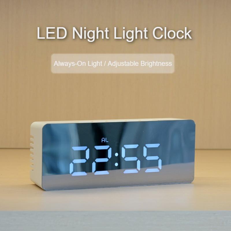 LED Mirror Alarm Clock with Night Light USB/AAA Dual-Powered Digital Display Desktop Clock