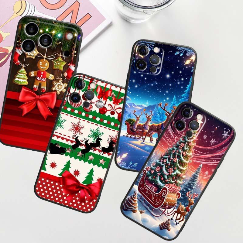 Christmas Gift Box Design For Apple iPhone 17 16 16E 15 14 13 12 11 Pro Max Plus Black Soft Silicone Phone Case