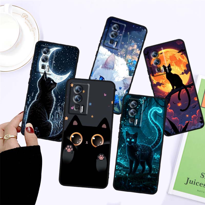 Cartoon Cat Cute For Xiaomi Redmi 12 13C 12C 13 10C 9T A2 9A 9C 7A Note 10S 8T 10 9 8 Pro 4G 5G Black Phone Case