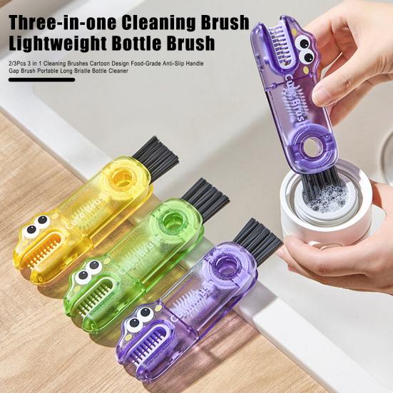 2/3Pcs 3 in 1 Cleaning Brushes Cartoon Design Food-Grade Anti-Slip Handle Gap Brush Portable Long Bristle Bottle Cleaner