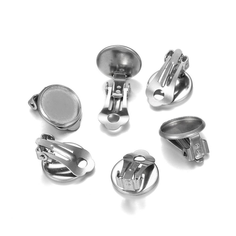 10pcs 8 10 12 14mm Stainless Steel Round Flat Ear Clip Base Cabochon Bezel Tray Earrings Clips For DIY Jewelry Makings Supplies