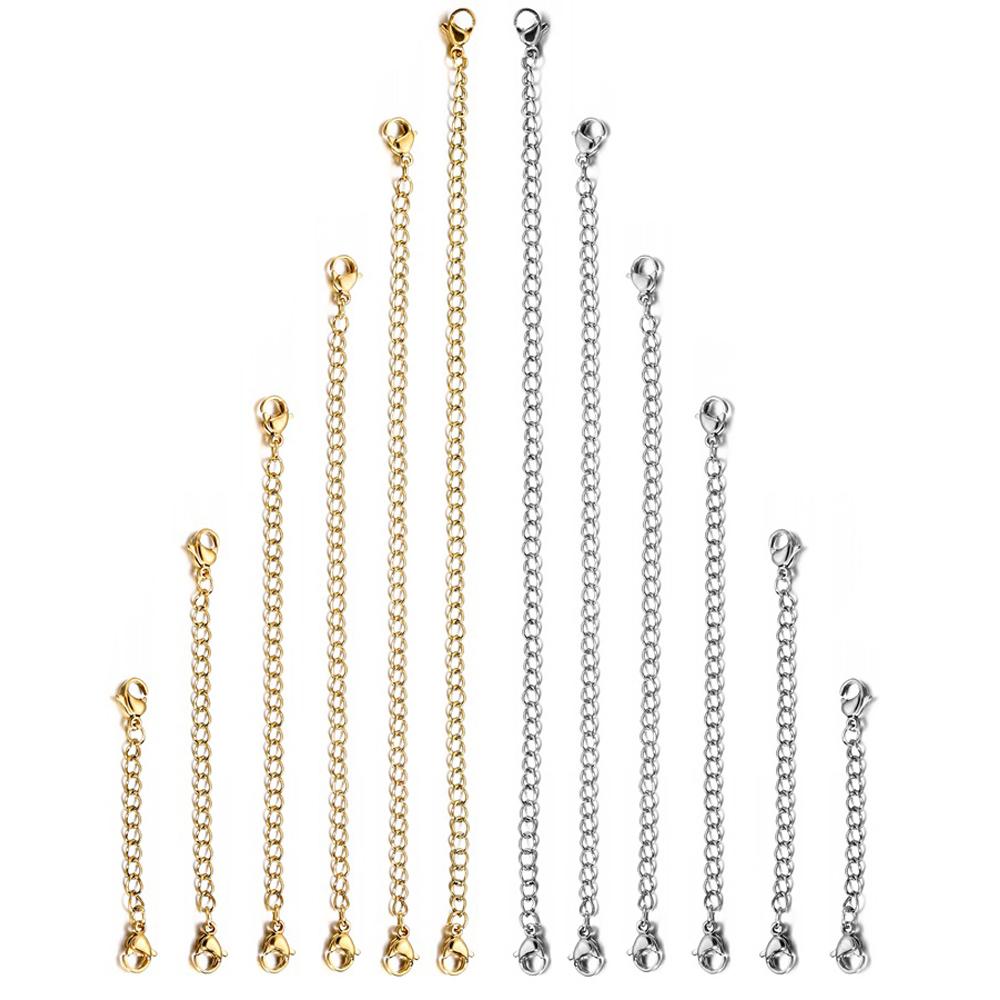 10Pcs/lot Stainless Steel Necklace Extension Chain Lobster Clasp Extended Chains For DIY Jewelry Making Supplies Accessories