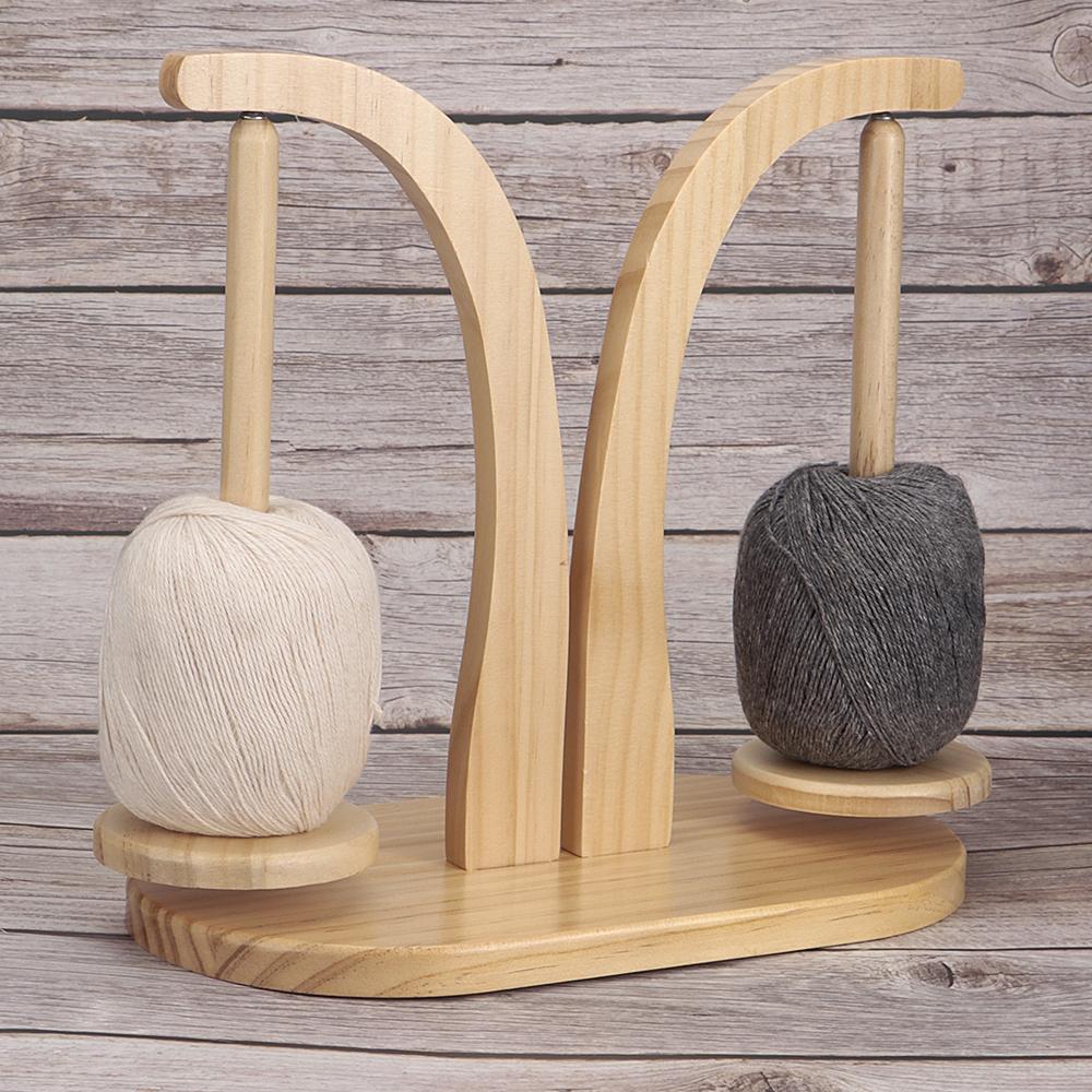 1pc Double Roller Wooden Yarn Winder Tool, Rotatable Yarn Spool Holder, DIY Knitting & Crochet Yarn Threads Storage Rack Frame