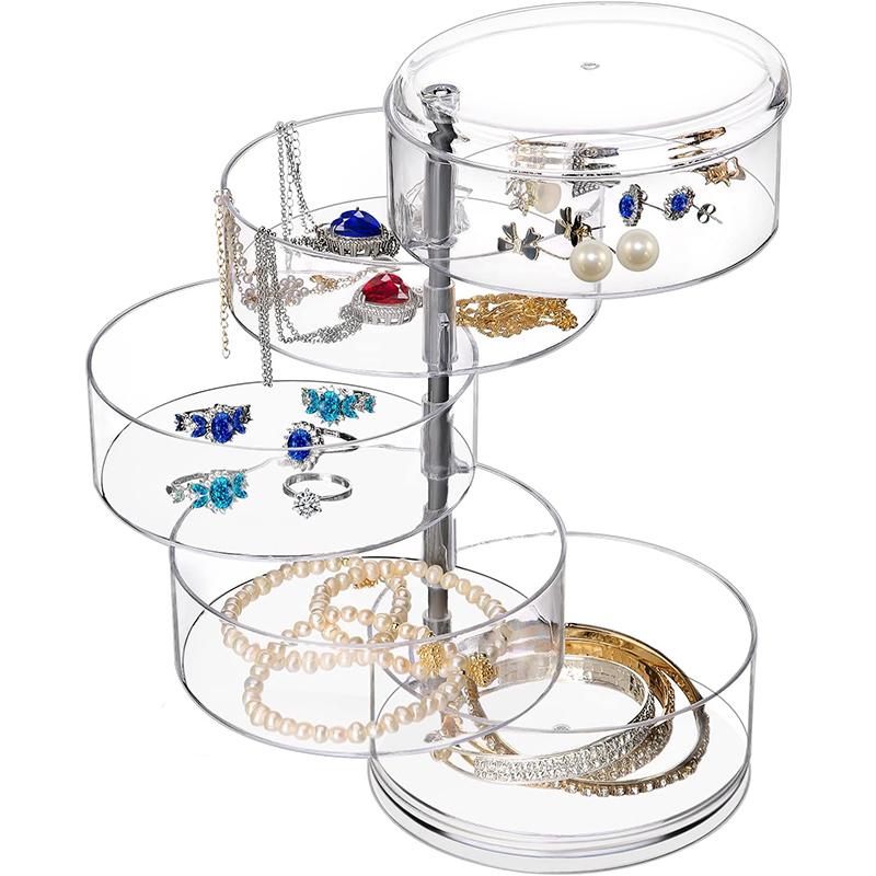 5-Layers Rotatable Jewelry Storage Organizer Box for Earrings Hair Accessories & Beauty Supplies Earrings Necklaces Bracelets
