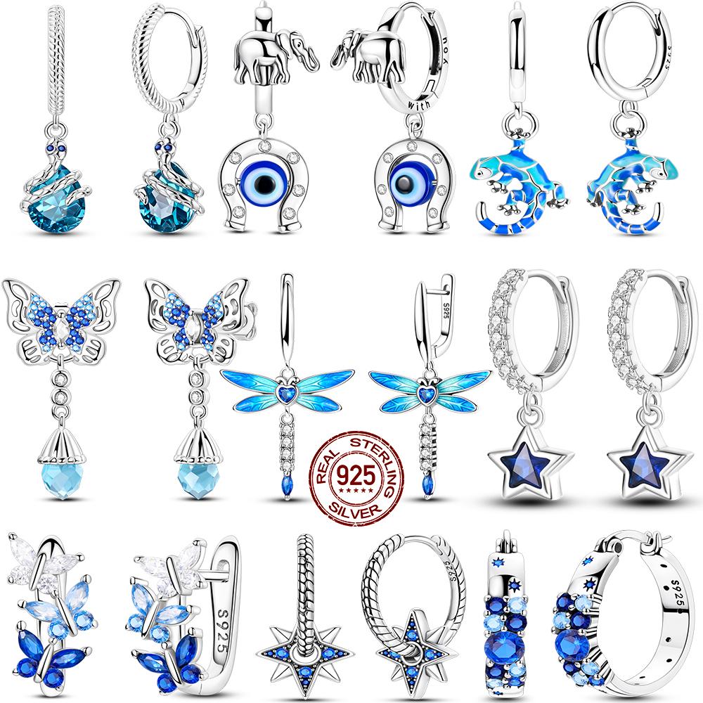 Hot Selling 925 Sterling Silver Blue Stars Butterfly Zircon Exquisite Earrings Suitable For Girls' Charming Jewelry Gifts