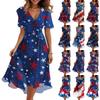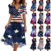 Women's Casual V-Neck Short-Sleeve Independence Day Print Dress