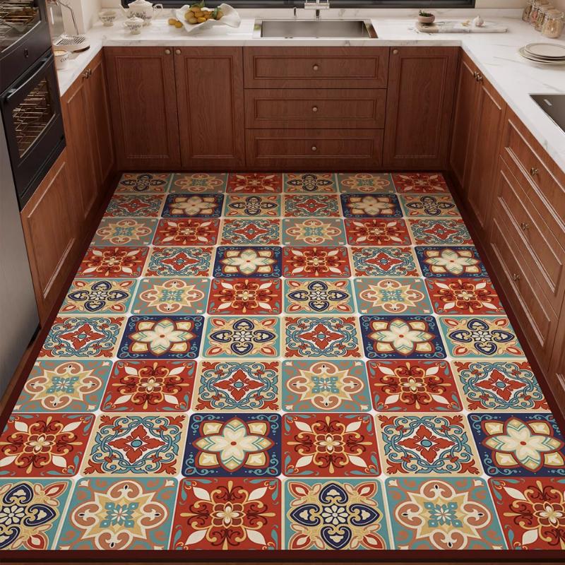 The floor mat you are looking at now is professionally used in the kitchen. Its fabric is leather PVC. Its main feature is waterproof, oil-proof and non-slip. At the same time, its soft and resilient fabric can also protect the tableware from being broken due to falling.