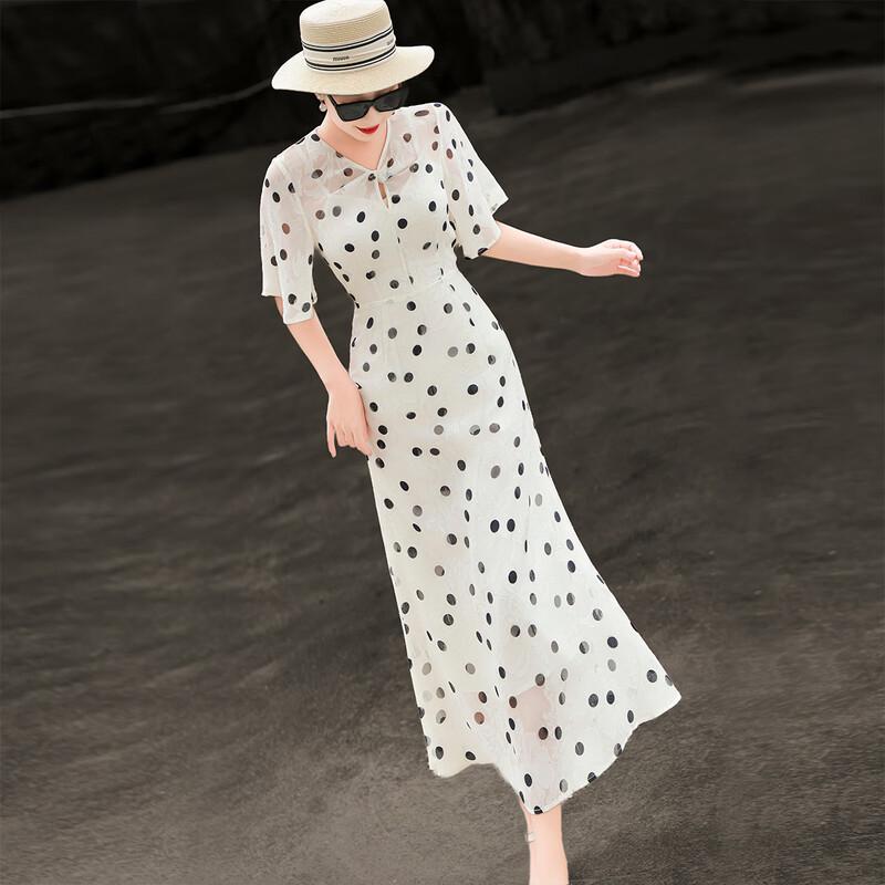 Lansere Polka Dot Ruffled V-Neck Midi Dress