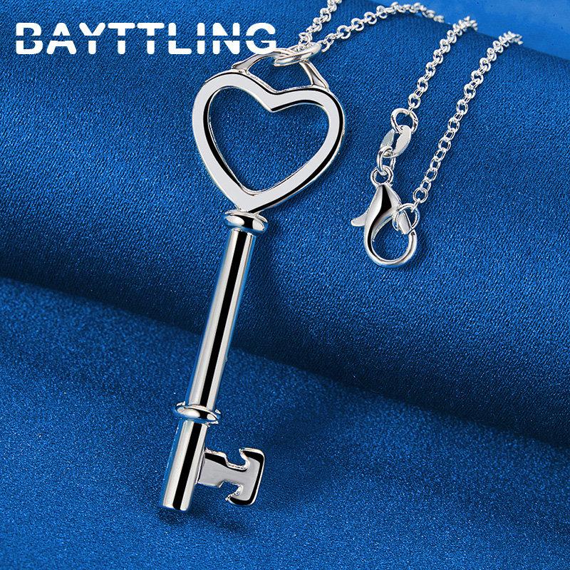 925 Sterling Silver 16-30 Inches Fine Heart Key Pendant Necklace For Women Men Fashion Wedding Engagement Jewelry Accessories