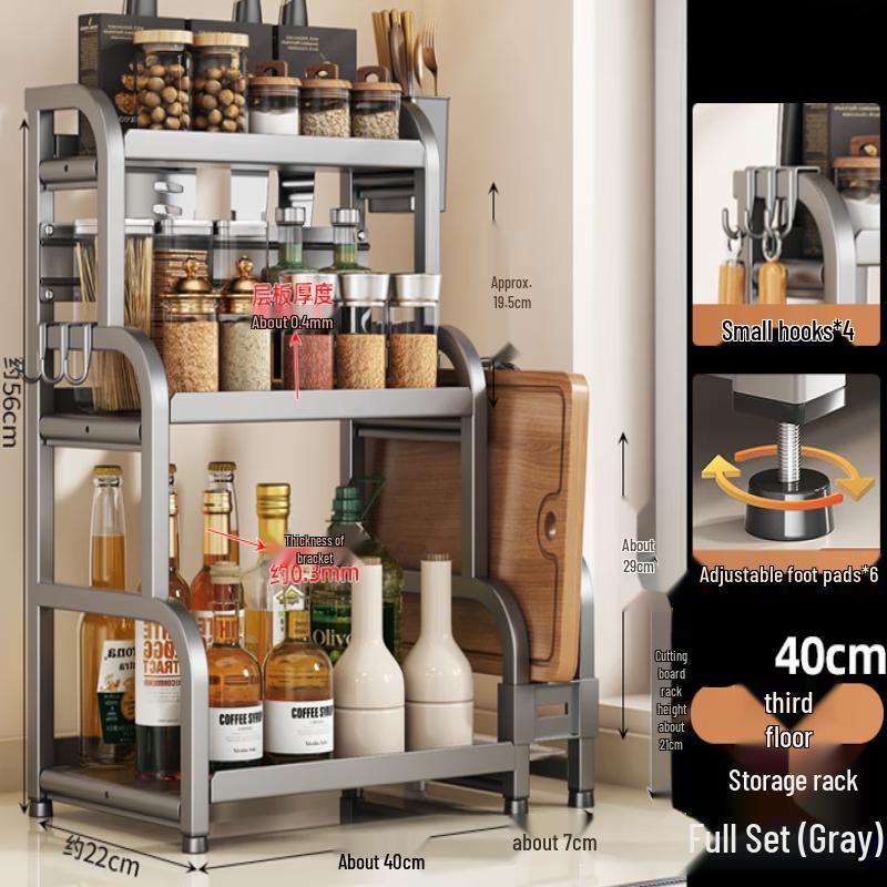 3-Layer Countertop Kitchen Spice Rack with Knife Holder