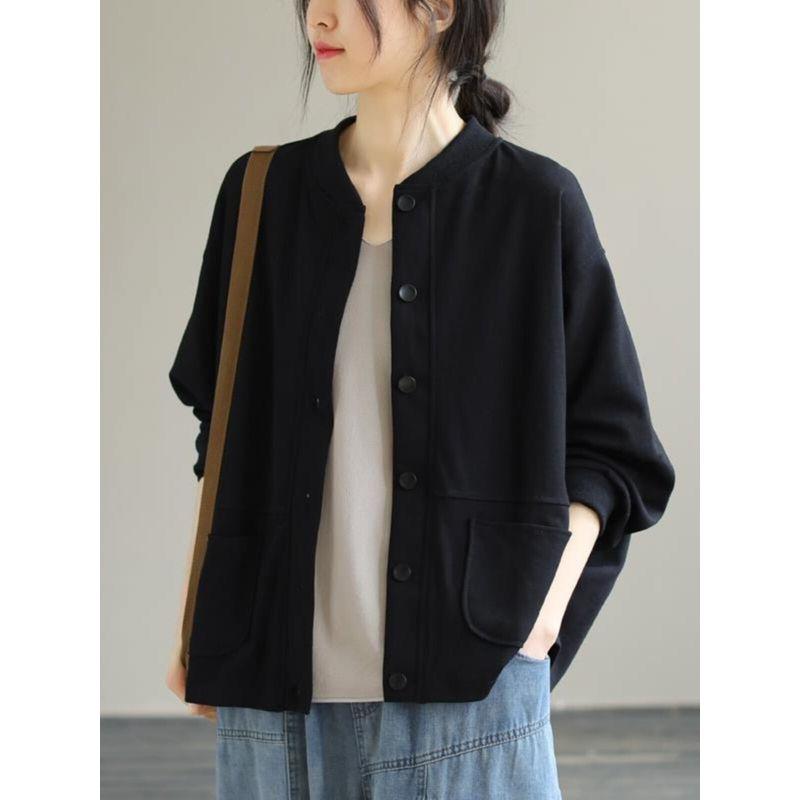 Women's Solid Color Baseball Jacket Loose Leisure Artistic