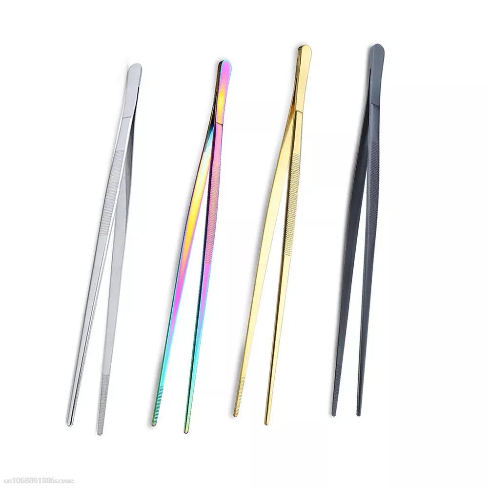12Inch Kitchen Tongs Stainless Steel Culinary Precision Tweezer Cooking Tongs for Barbecue Food Tongs Thickened Daily Clamp Tool