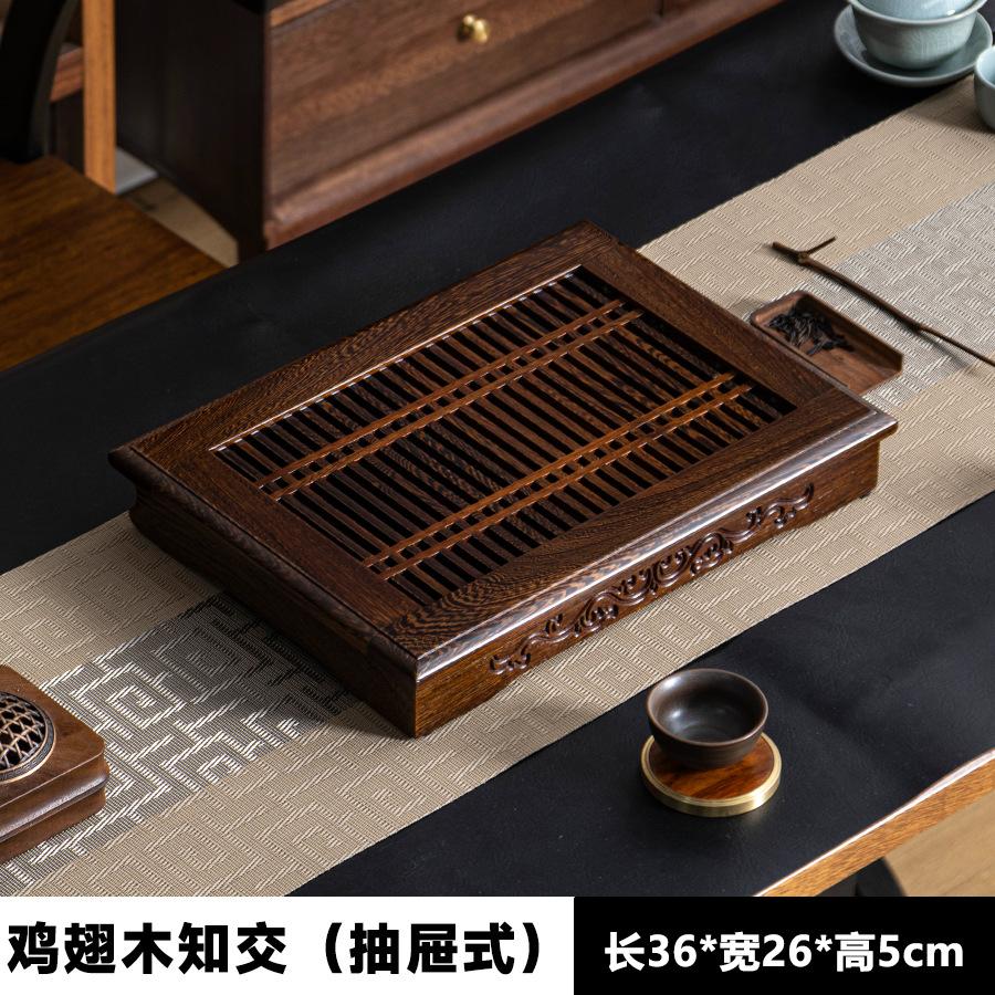 New Chinese living room table wenge water storage tea tray drawer type with tray drainage kung fu set solid wood