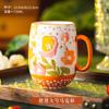 730ML Ceramic Coffee Mug Painted Flower Water Cup Exquisite Afternoon Camellia Flower Tea Cup Large Capacity Breakfast Milk Mug